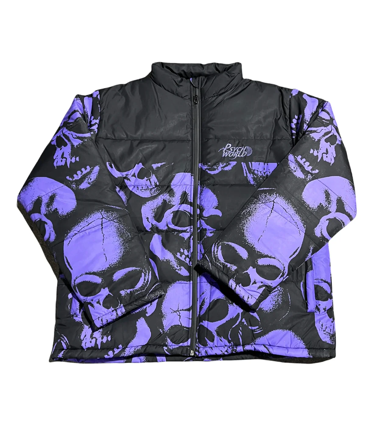 Product Name:Â Psychworld Black Purple Skull Print Puffer Jacket
